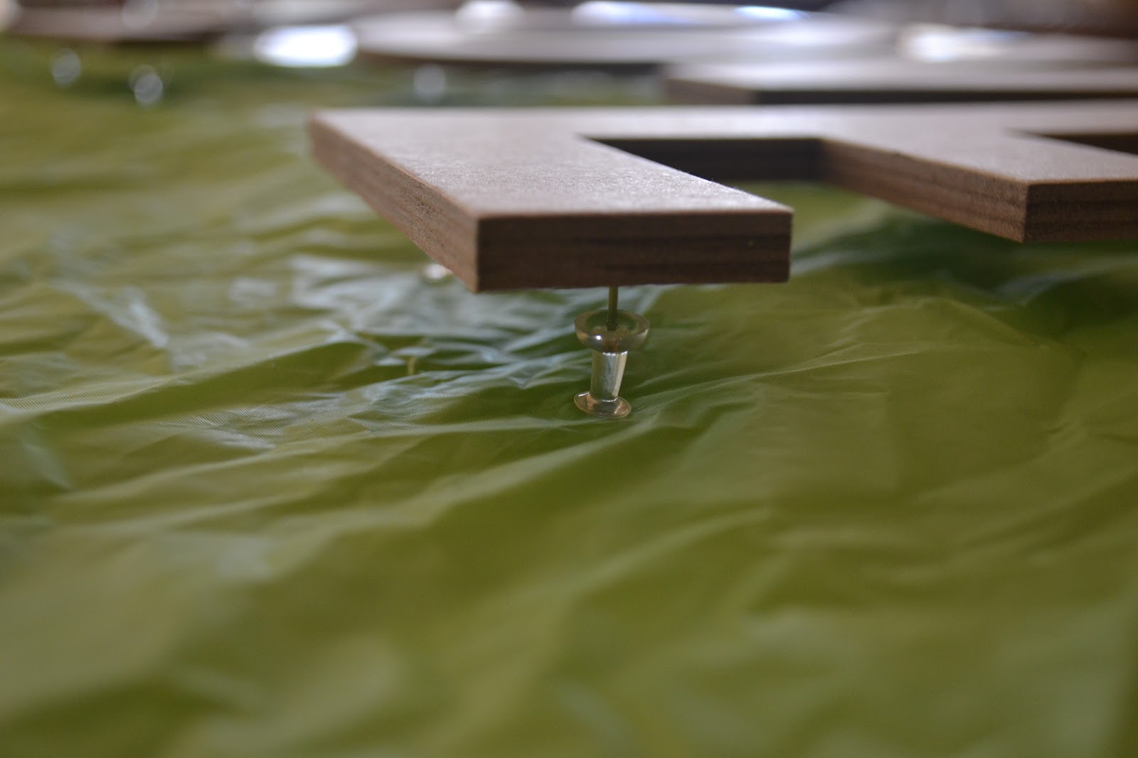 Stuck push pins in the back of the letters to raise it off of the counter so I could paint them with out it sticking.